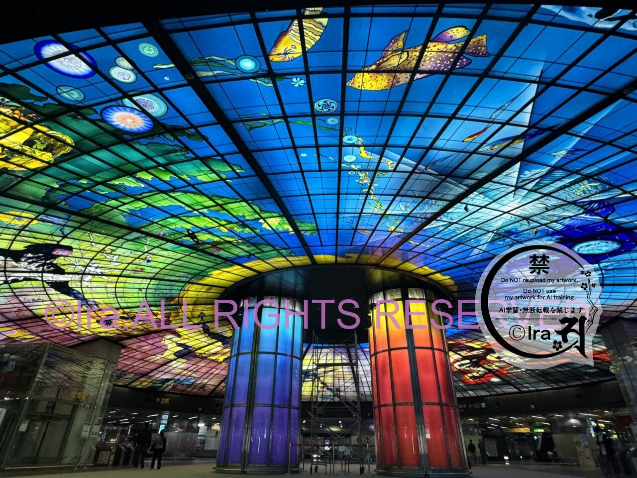 Kaohsiung, Taiwan: Rainbow-colored train station. Tourist Information