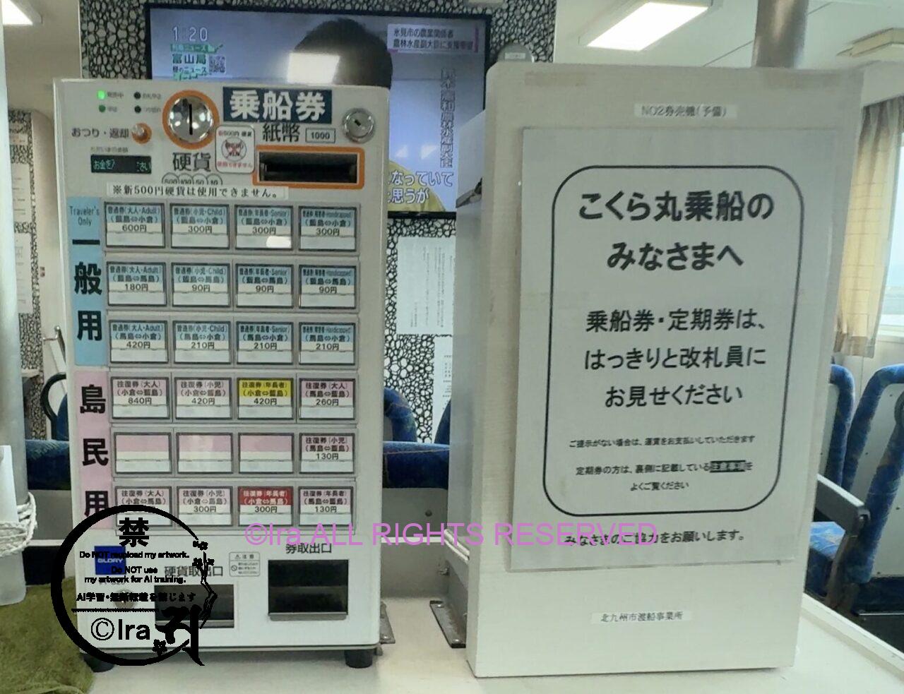 For boarding from remote islands, tickets were purchased on board. Cash payment only. New 500 yen coins are not accepted. Only 1,000 yen bills are accepted.