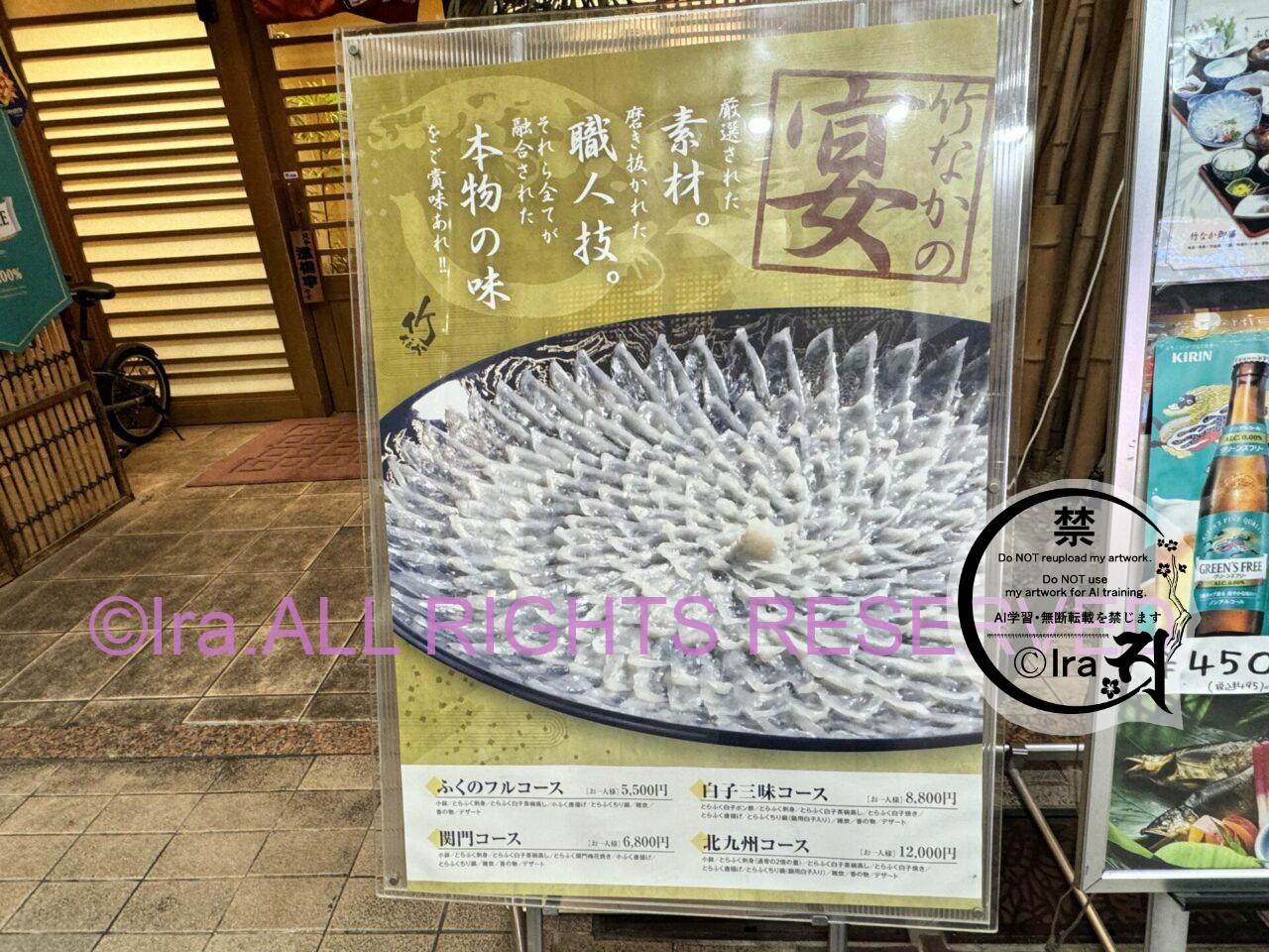 Ramen is under 1,000 yen. Fugu dishes are also available.