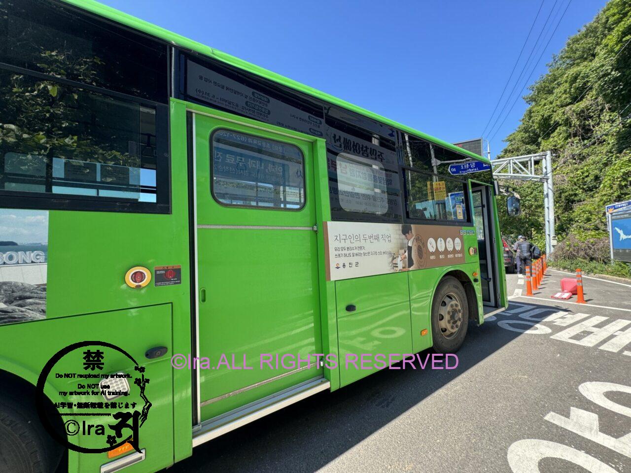 You could board this green bus at the parking lot where you disembarked for a round trip. Even if there is a bus when you disembark, there is no driver. It seems to come back about 10 minutes before departure time. This bus left 5 minutes before departure time, so 5 minutes is already game over in Korea.