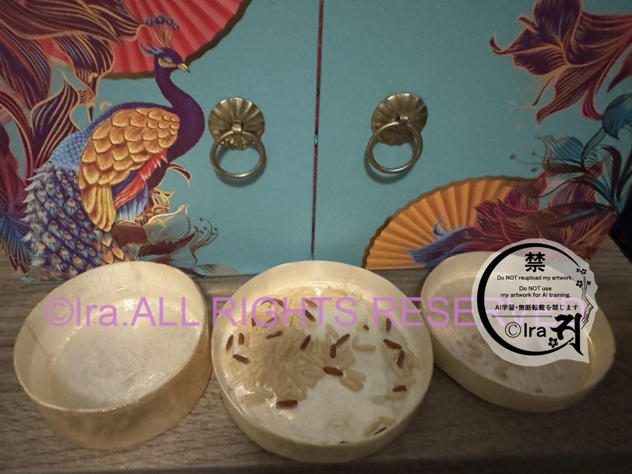 I eat brown rice in Southeast Asia, so I offer brown rice to the gods instead of white rice. While staying in Japan, I offer white rice.